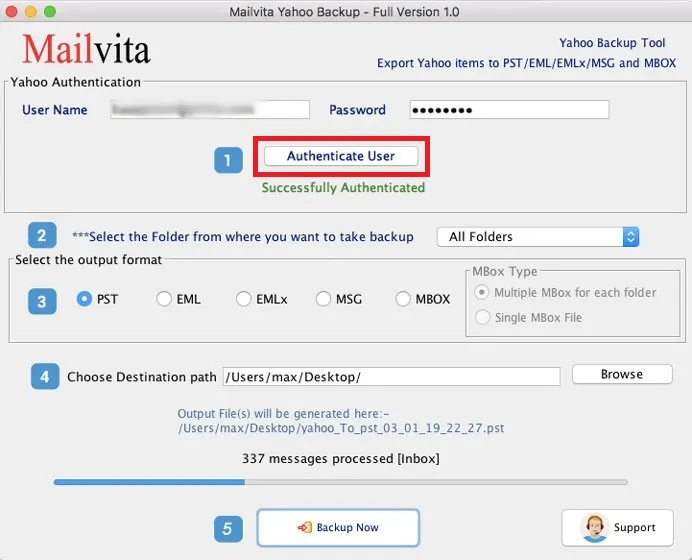 The above discussed manual method to backup Yahoo emails to computer is free but involves many disadvantages hence users look for alternate solutions i.e. third-party solutions. One such beneficial tool is Mailvita Yahoo Backup Software. You can use this program on all versions of Mac and Windows. You can backup all Yahoo emails and attachments into your system with this software. You will get multiple file formats for saving Yahoo data backup. The program is fully secure to use and offers a few simple steps.